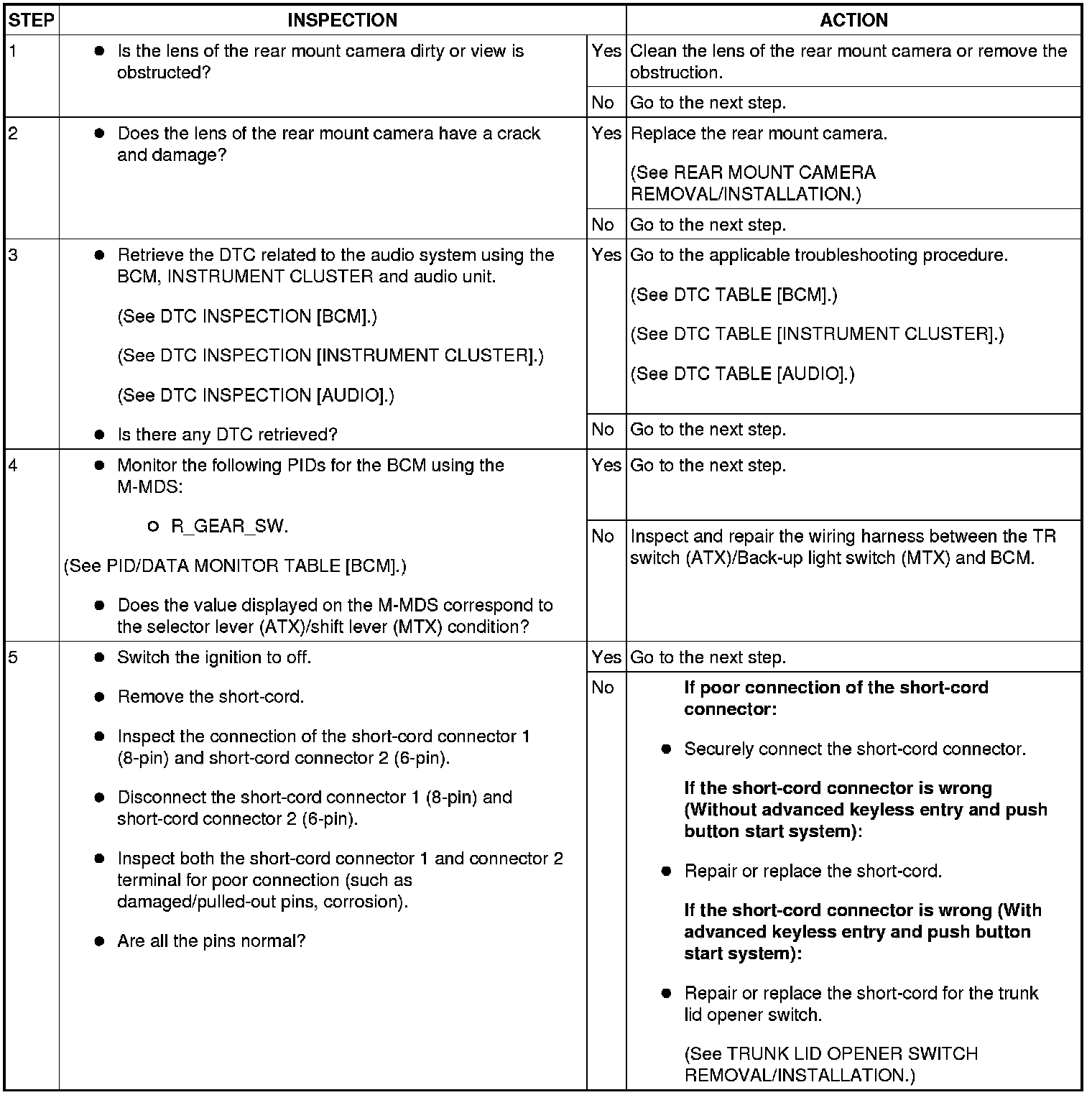 No. 11 Display Does Not Change To The Rear Mount Camera Image - Entire Audio System