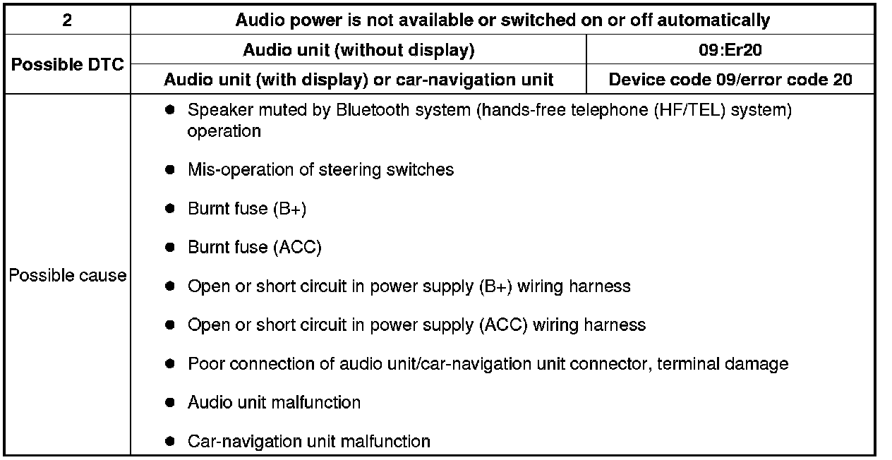No. 2 Audio Power Is Not Available Or Switched ON Or OFF Automatically
