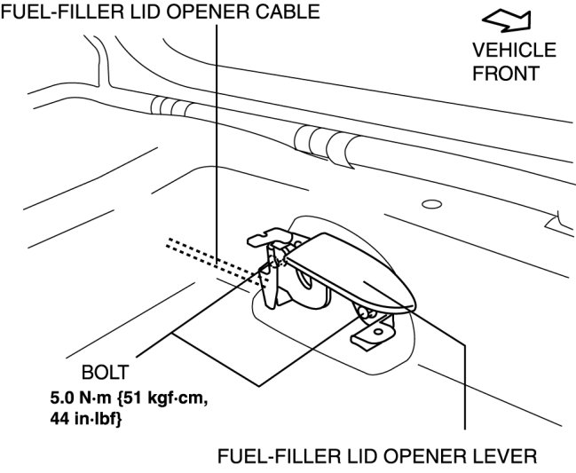 3. Disconnect the cable and fuel-filler lid opener lever.