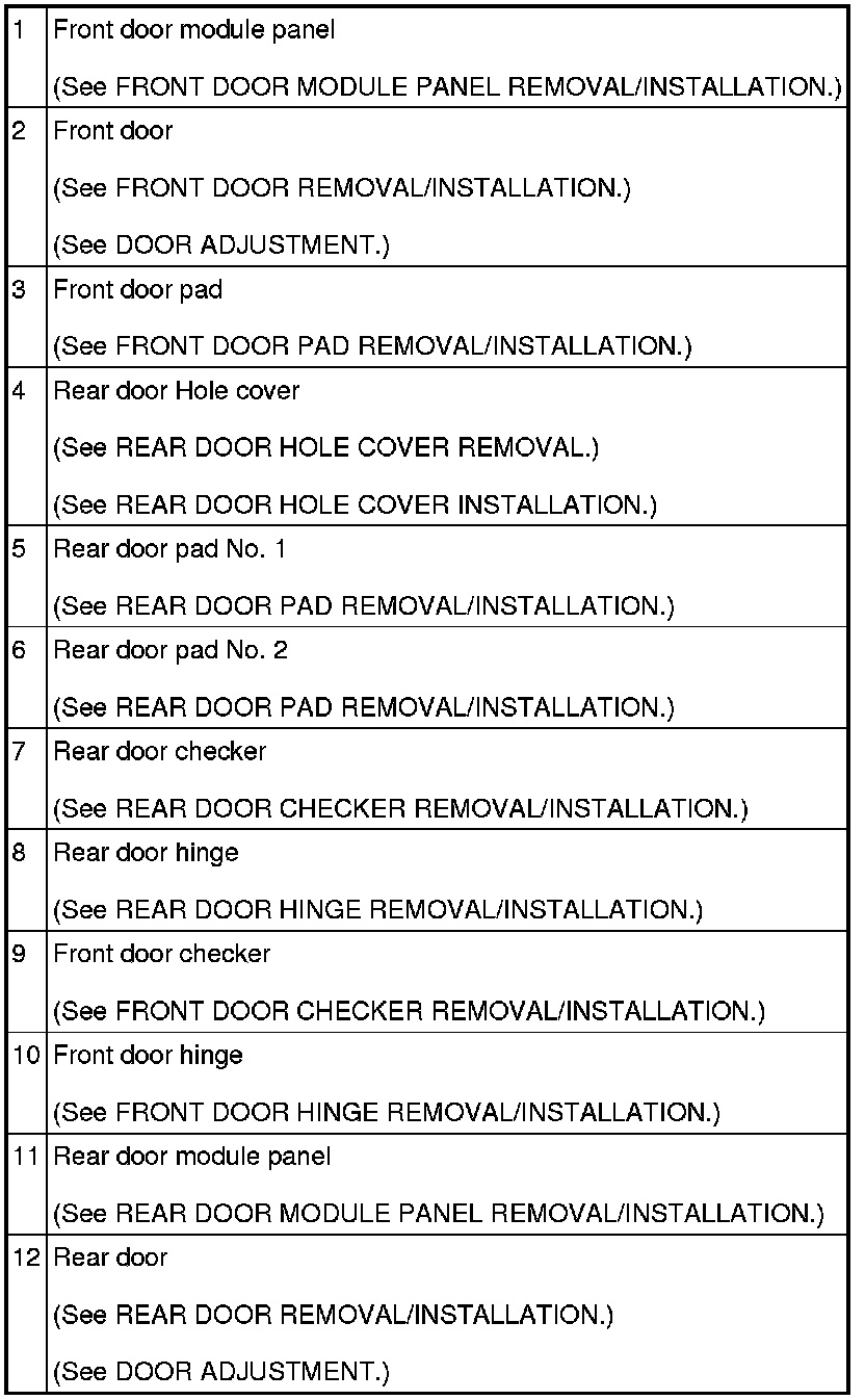 DOOR AND LIFTGATE LOCATION INDEX