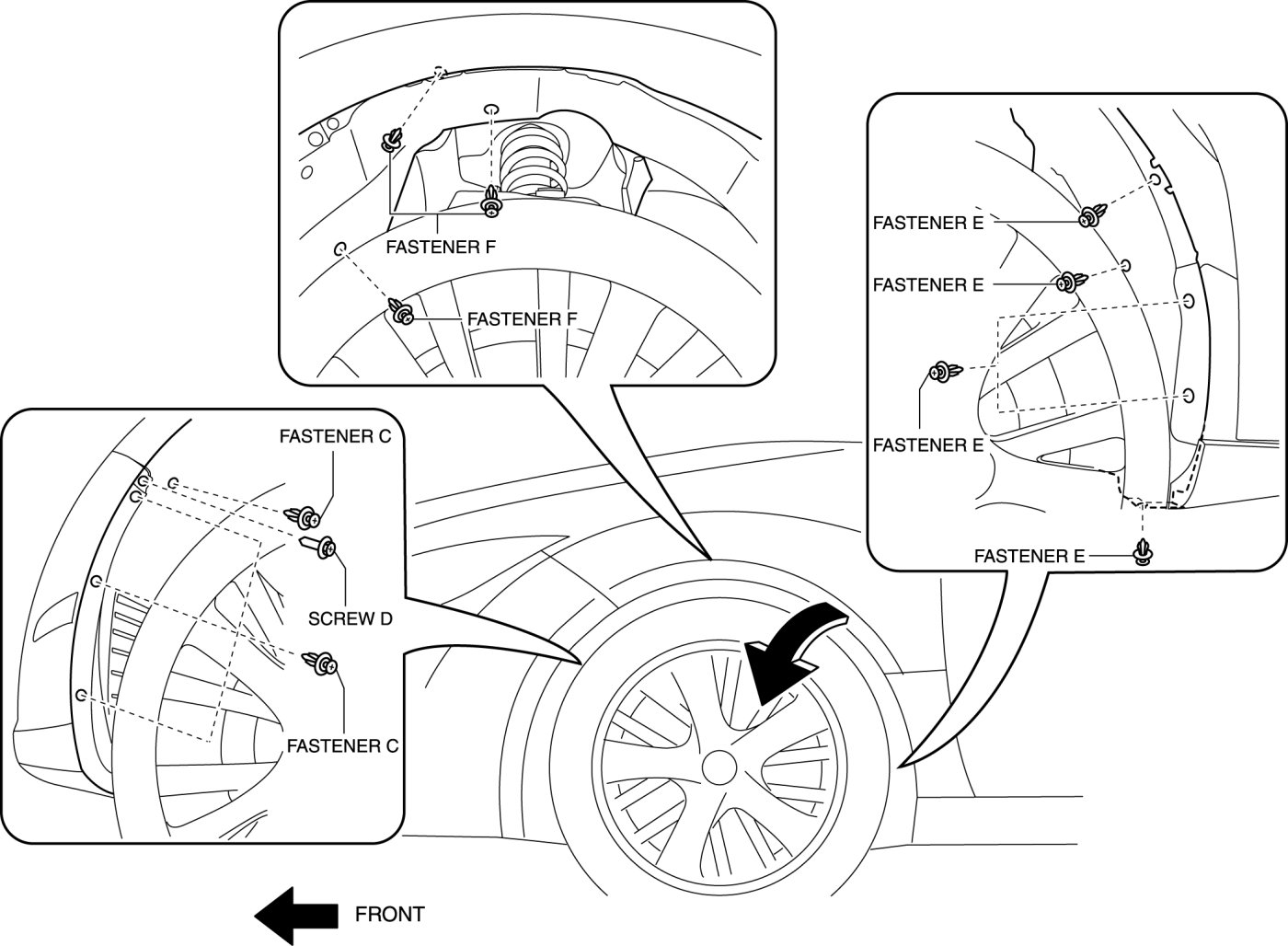 3. Remove the front mudguard in the direction of the arrow shown in the figure.