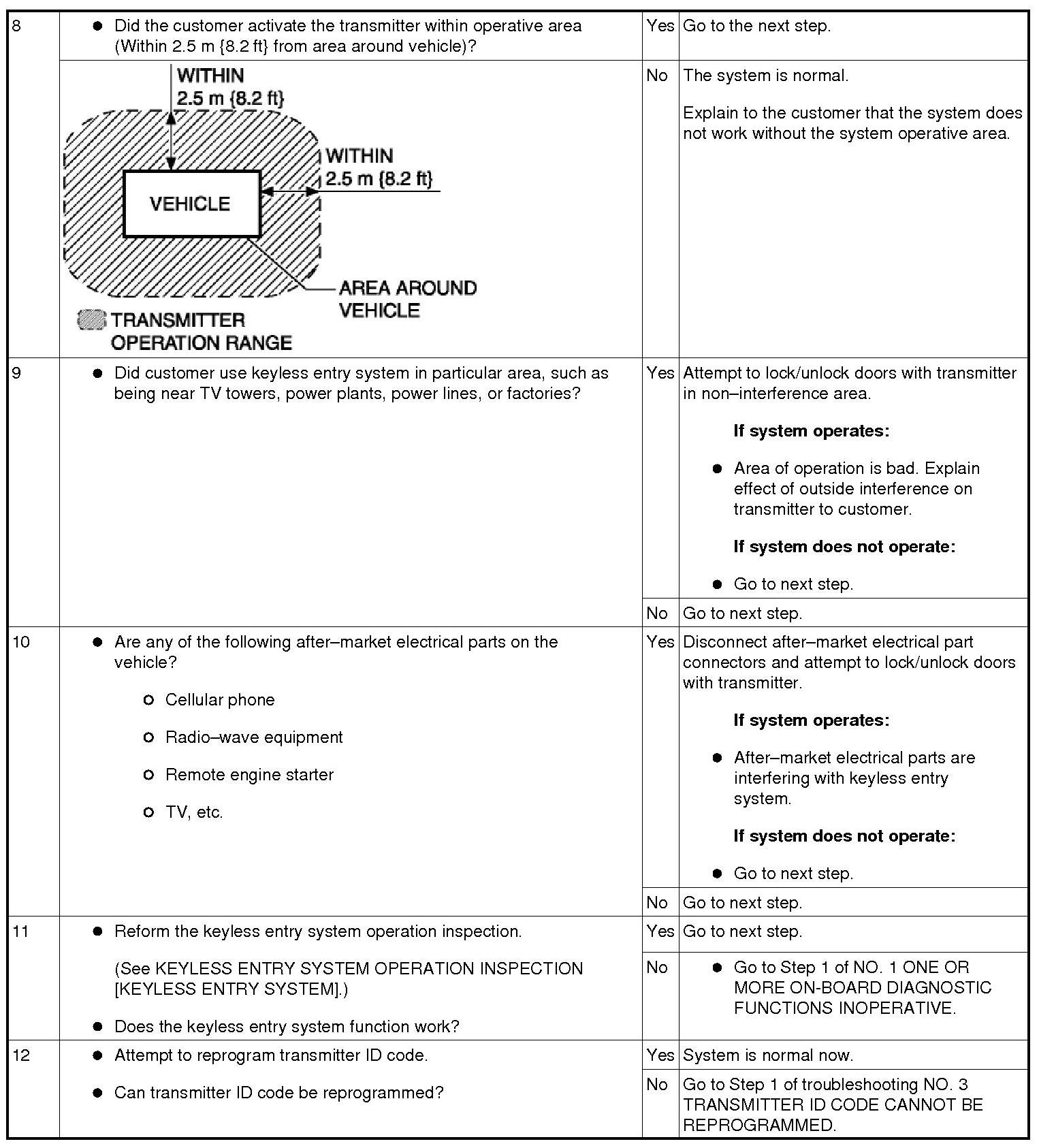 KEYLESS ENTRY SYSTEM PRELIMINARY INSPECTION [KEYLESS ENTRY SYSTEM]