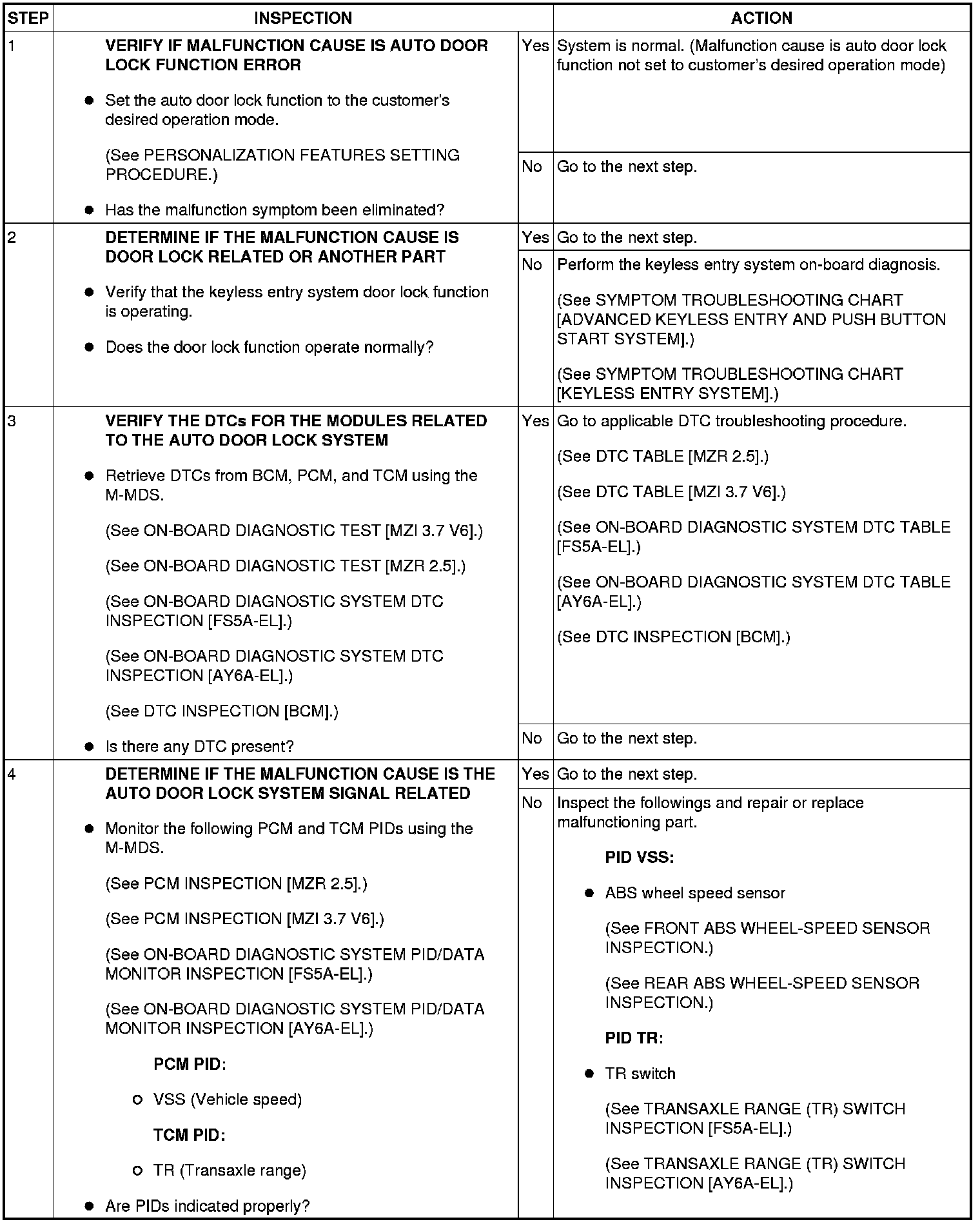 No.1 AUTO DOOR LOCK FUNCTION DOES NOT OPERATE [AUTO DOOR LOCK SYSTEM]