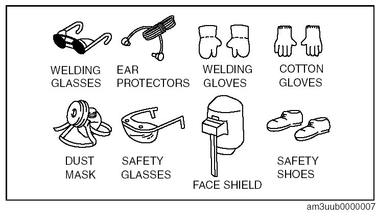 - Protective head covering and safety shoes should always be worn. Depending upon the nature of the work, gloves, safety glasses, ear protectors, face shield, etc., should also be used.