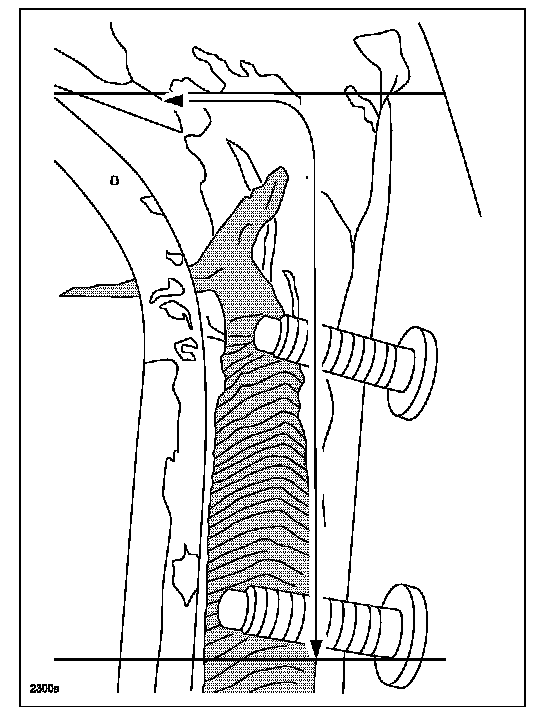 7. Tape (A) the LH dash gusset so the seam (B) can be clearly visible and easily accessible.