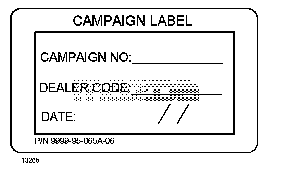 1. Fill out a blue Campaign Label" (9999-95-065A-06) with the Campaign No: MSP34", your dealer code, today's date, and affix it to the vehicle's bulkhead or hood.