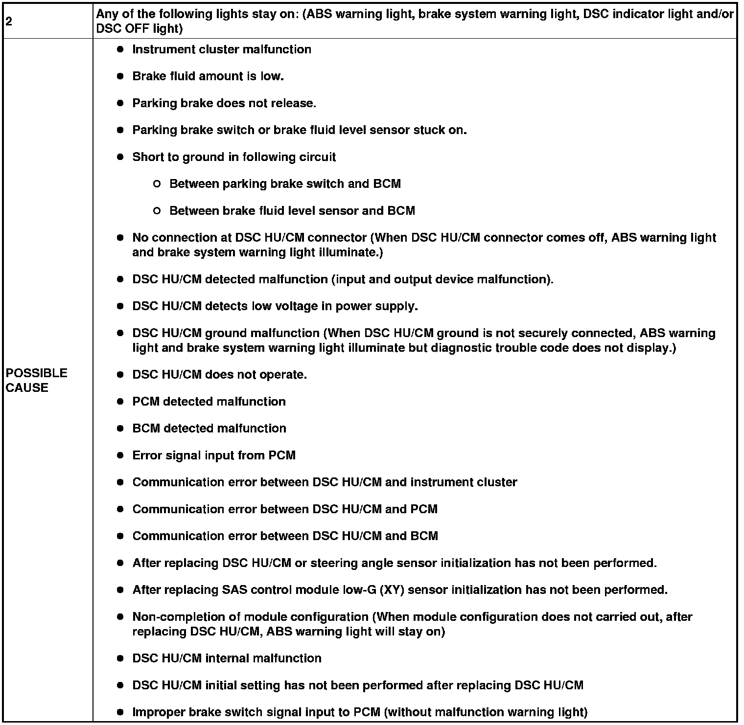 No. 2 Any Of The Following Lights Stay ON: (ABS Warning Light, Brake Warning Light, DSC Indicator Light And/Or DSC OFF Light)