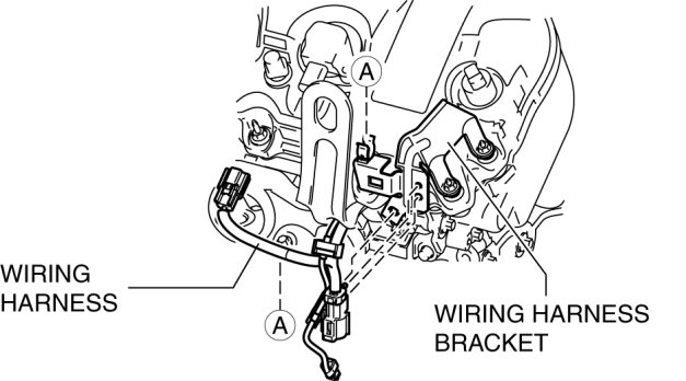 f. Disconnect the wiring harness from the wiring harness bracket as shown in the figure.