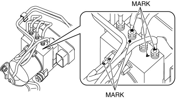1. Place an alignment mark on the brake pipe and DSC HU/CM.