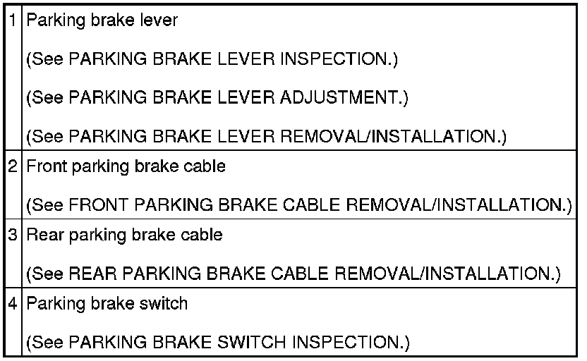 PARKING BRAKE SYSTEM LOCATION INDEX