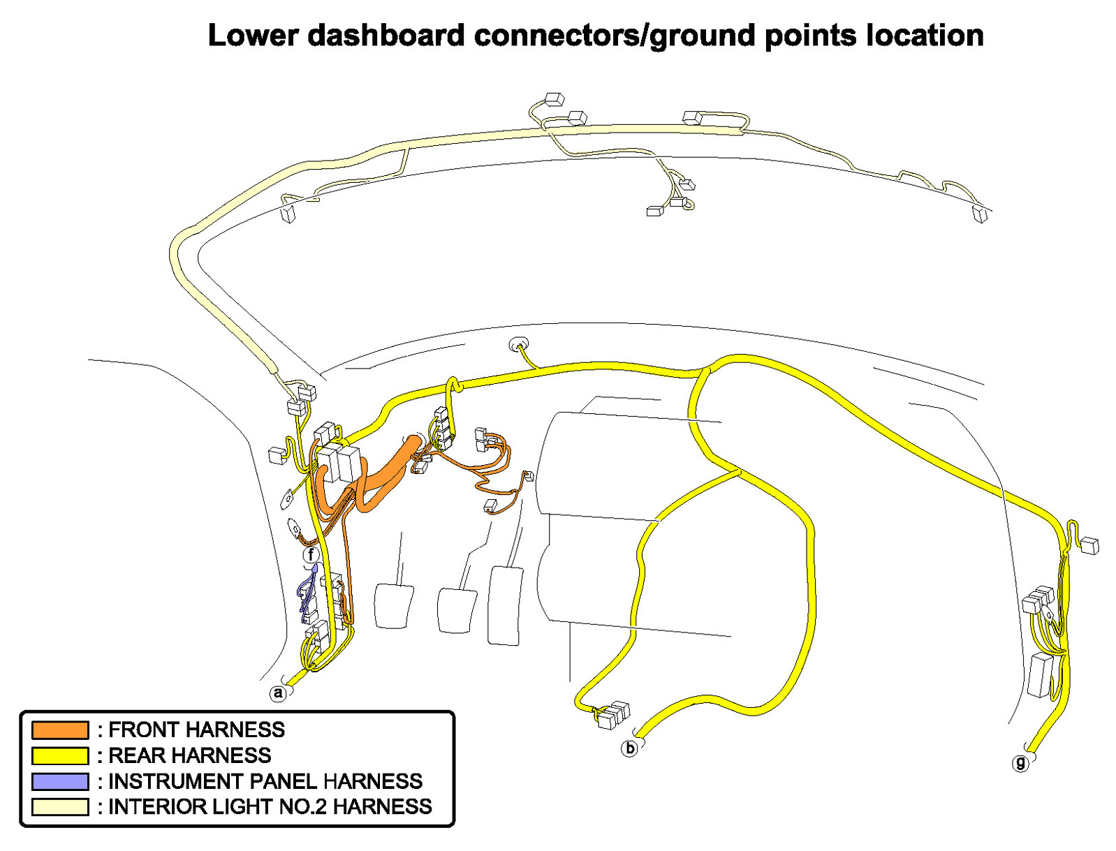 Lower Dashboard Connectors/Ground Points Location