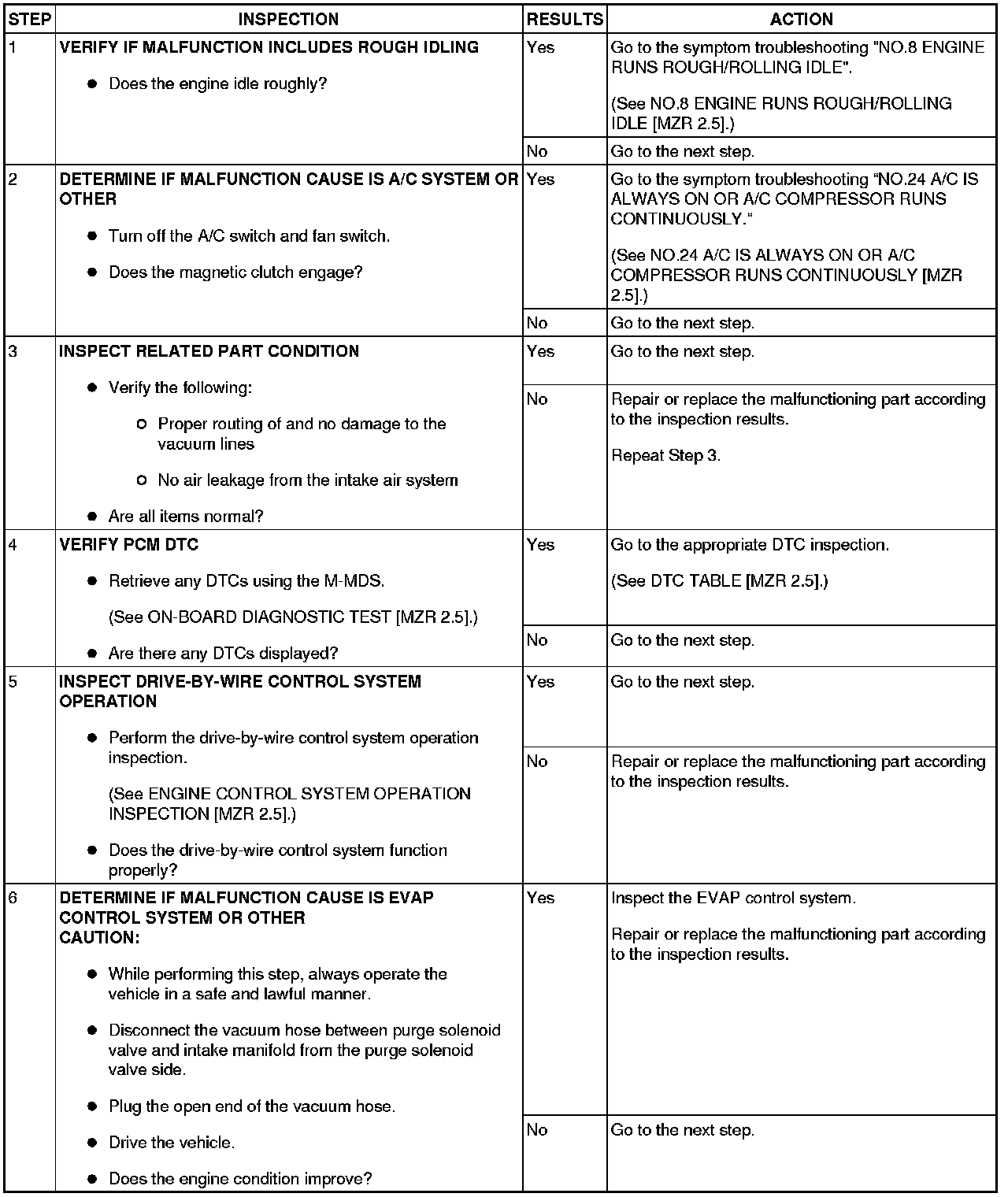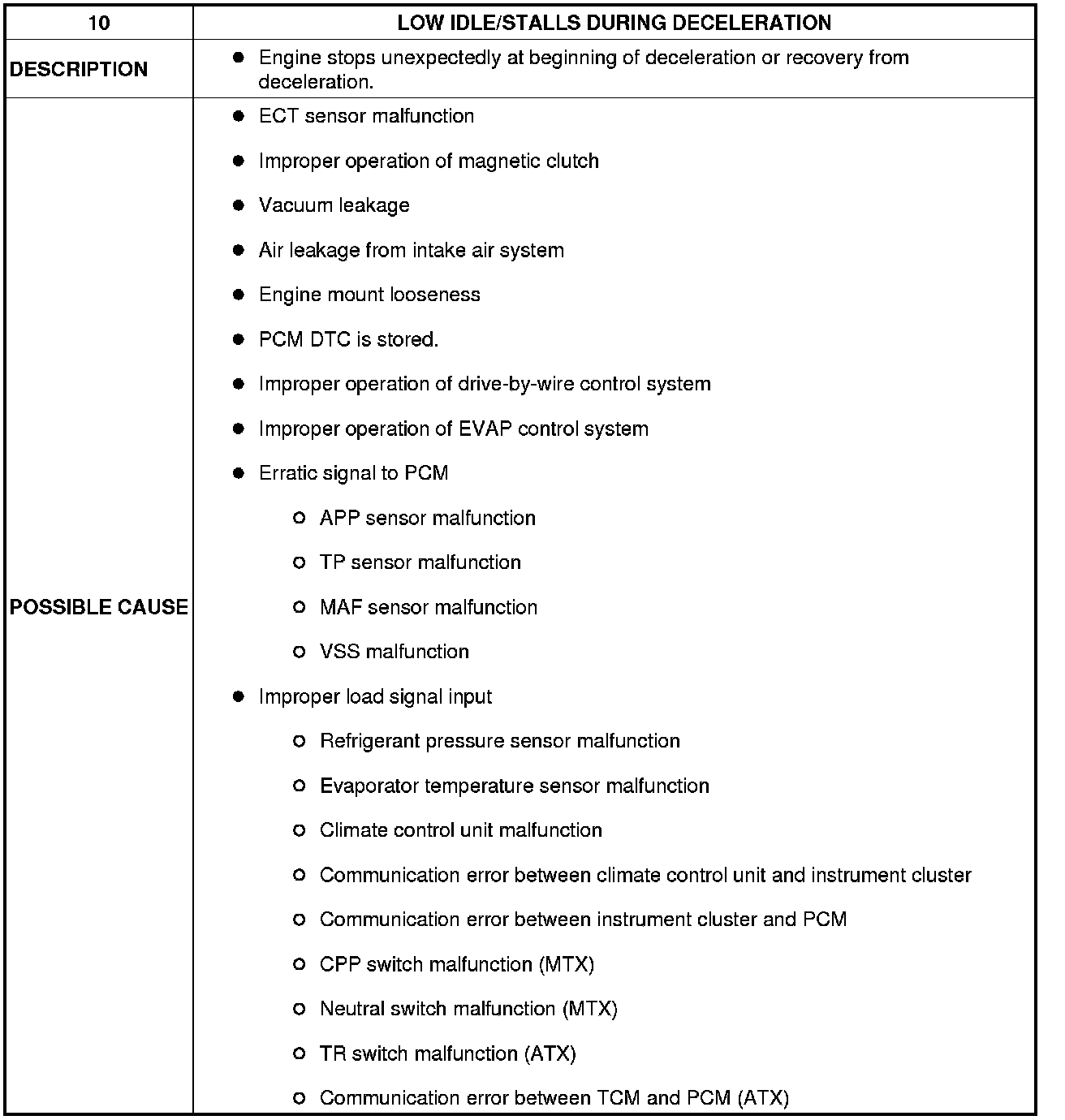 NO.10 LOW IDLE/STALLS DURING DECELERATION [MZR 2.5]