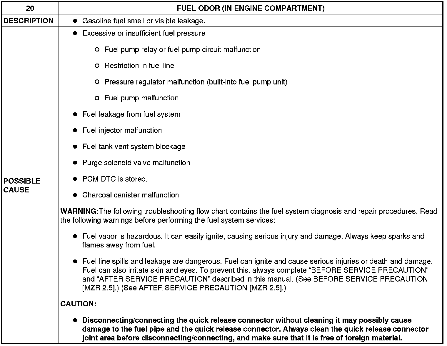 NO.20 FUEL ODOR (IN ENGINE COMPARTMENT) [MZR 2.5]