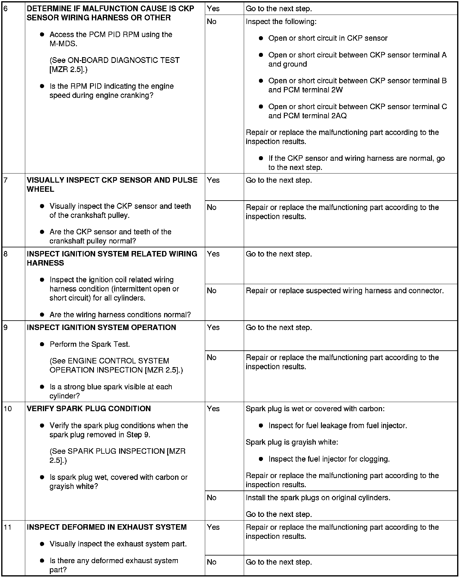 NO.6 CRANKS NORMALLY BUT WILL NOT START [MZR 2.5]