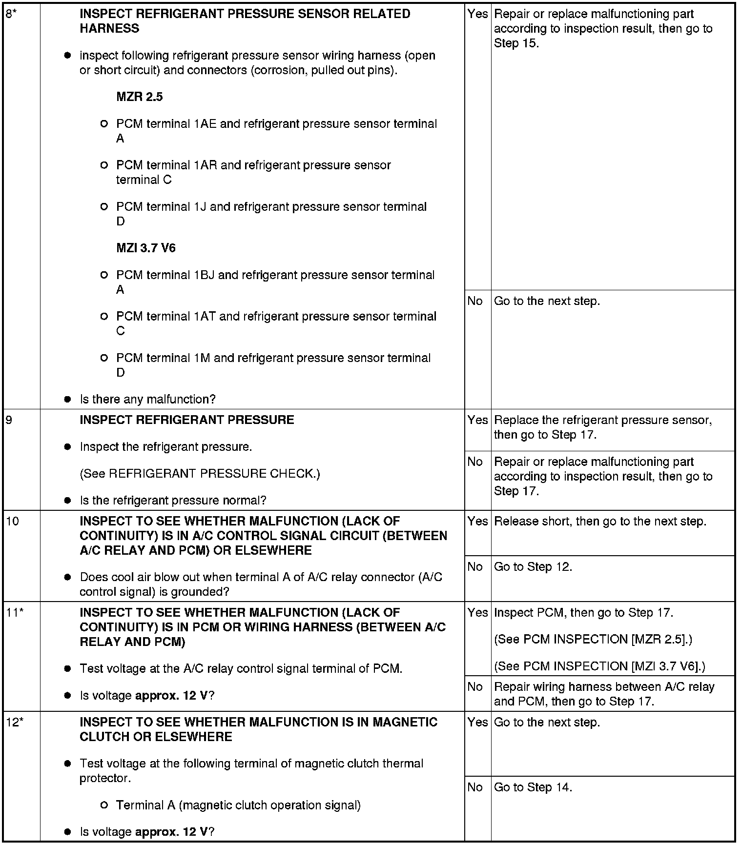 - When performing an asterisked (*) troubleshooting inspection, shake the wiring harness and connectors while performing the inspection to discover whether poor contact points are the cause of any intermittent malfunctions. If there is a problem, check to make sure connectors, terminals and wiring harnesses are connected correctly and undamaged.