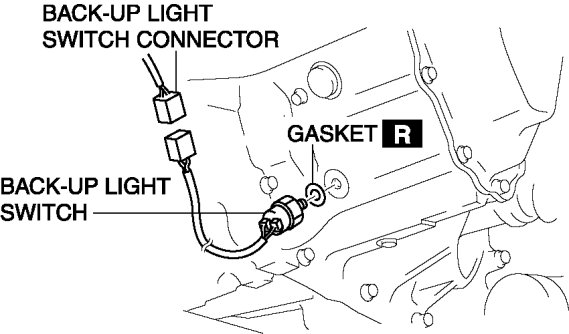 4. Disconnect the back-up light switch connector and remove the back-up light switch and gasket.