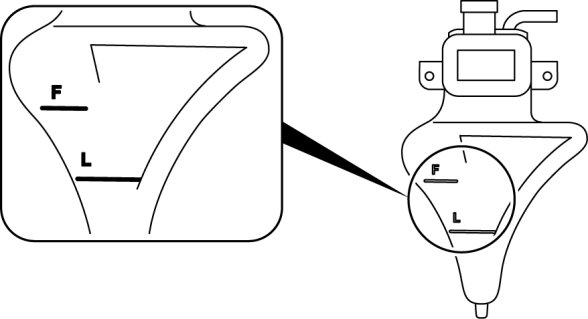 - If the engine coolant level is below the L mark, add engine coolant.