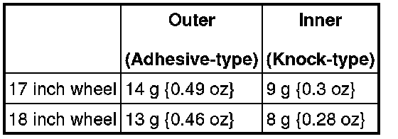 - One balance weight must not exceed 60g {2.12 oz}, and a total of tow balance weights must not exceed 100g {3.53 oz}.