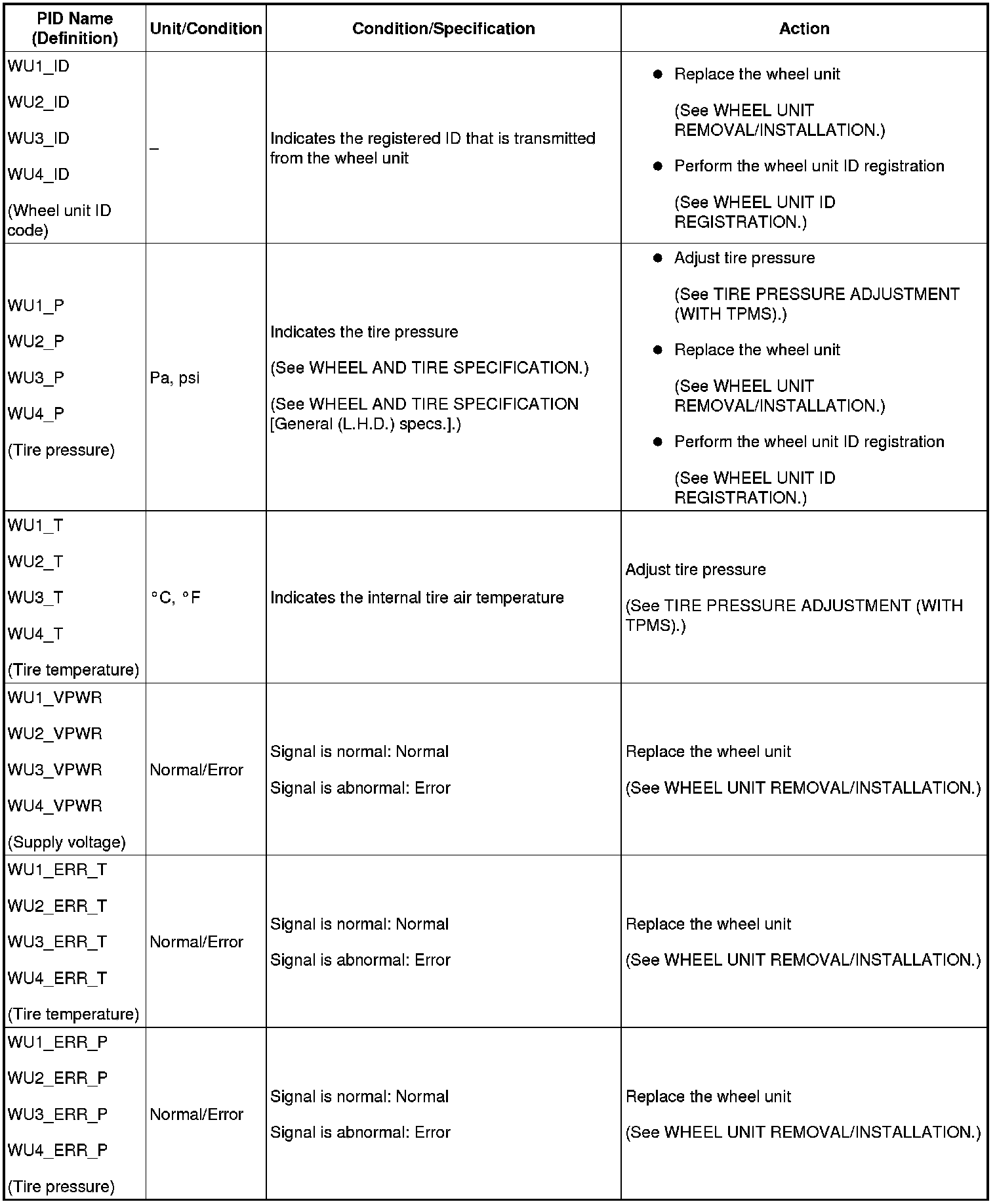 - The tire pressure monitoring system (TPMS) does not identify the location of the malfunctioning wheel unit on the vehicle (RF, LF, LR, RR). The TPMS identifies each wheel unit as No.1, No.2, No.3 and No.4. In order to identify the location of the wheel unit, perform the MALFUNCTIONING WHEEL UNIT IDENTIFICATION procedure. (See. Component Tests and General Diagnostics.)