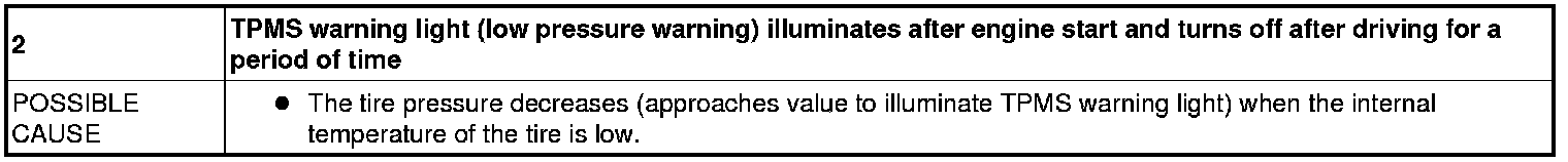 No. 2 TPMS Warning Light (Low Pressure Warning) Illuminates After Engine Start And Turns OFF After Driving For Period Of Time