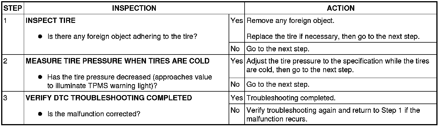 - The tire pressure normally decreases by approx. 7 kPa {0.07 kgf/cm2, 1.02 psi} per month even if the tire is normal.