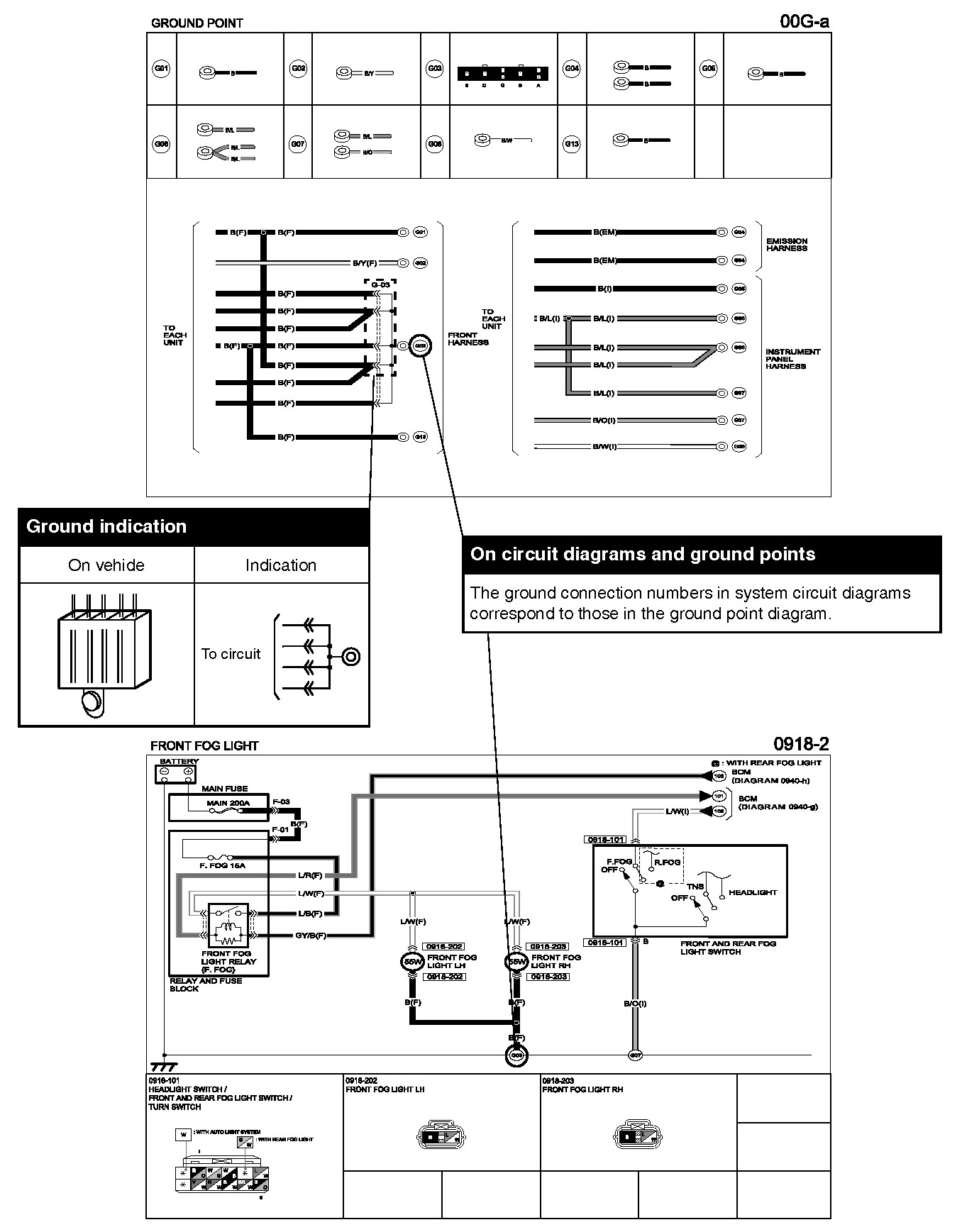 This shows ground points of the harness.