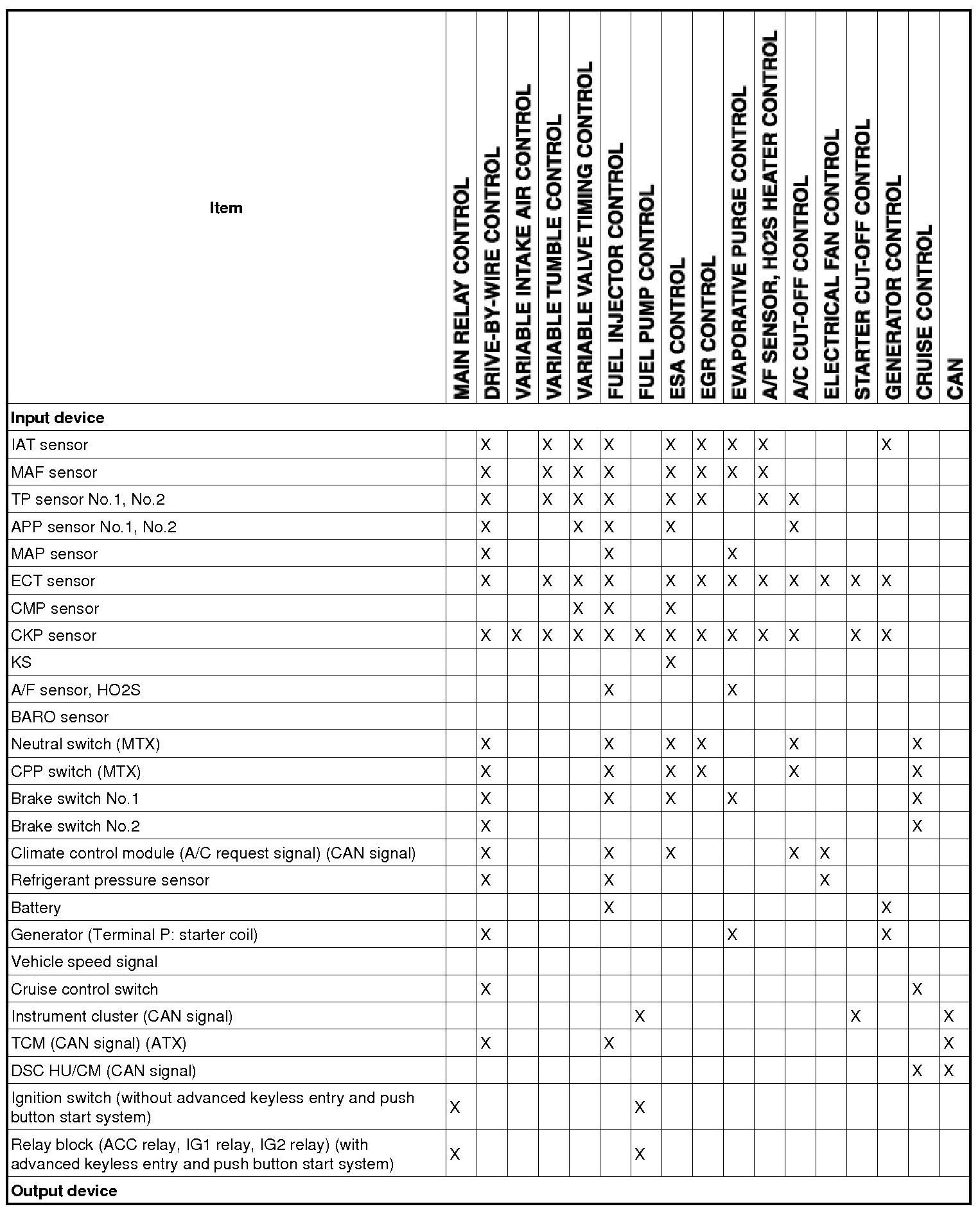 CONTROL SYSTEM DEVICE AND CONTROL RELATIONSHIP CHART [MZR 2.5]