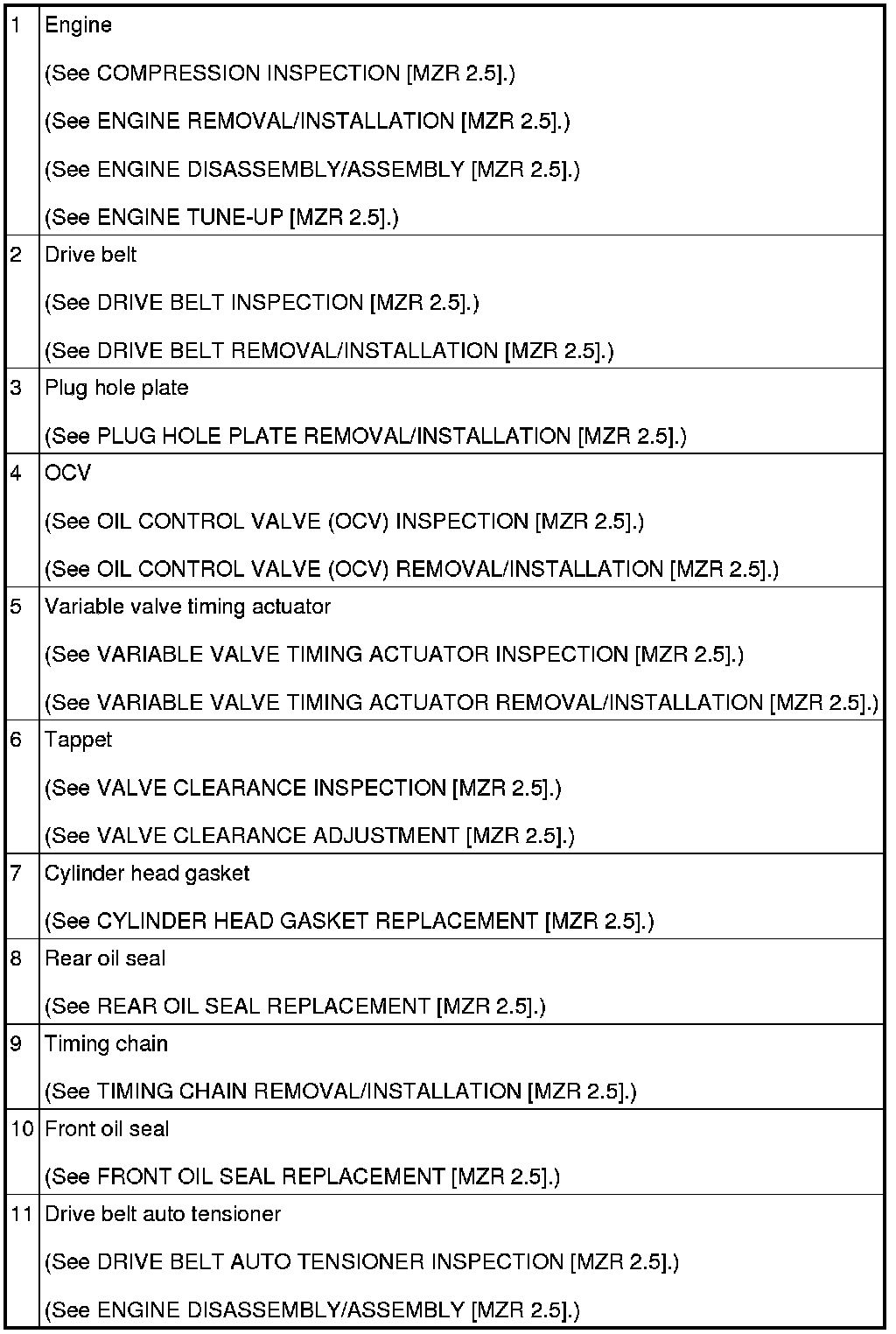 ENGINE LOCATION INDEX [MZR 2.5]