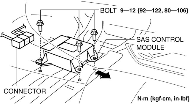 - If the connector is connected and the ignition switch is turned to the ON position with the SAS control module not secured completely using the installation nuts, the SAS control module may detect a degree of impact even when something contacts it lightly, deploying the air bag module and pre-tensioner seat belt accidentally.
