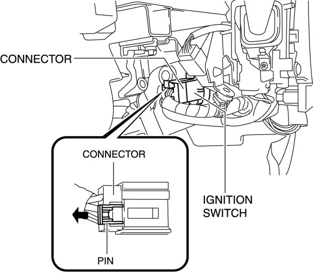IGNITION SWITCH REMOVAL/INSTALLATION [WITHOUT ADVANCED KEYLESS ENTRY AND PUSH BUTTON START SYSTEM]
