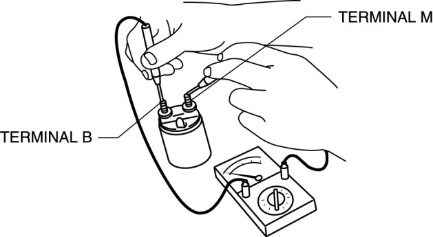3. Verify that there is no continuity between terminals M and B using a tester.