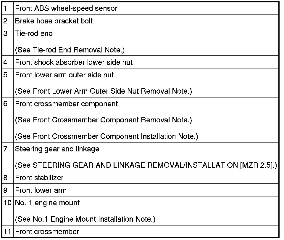 FRONT CROSSMEMBER REMOVAL/INSTALLATION [MZR 2.5]