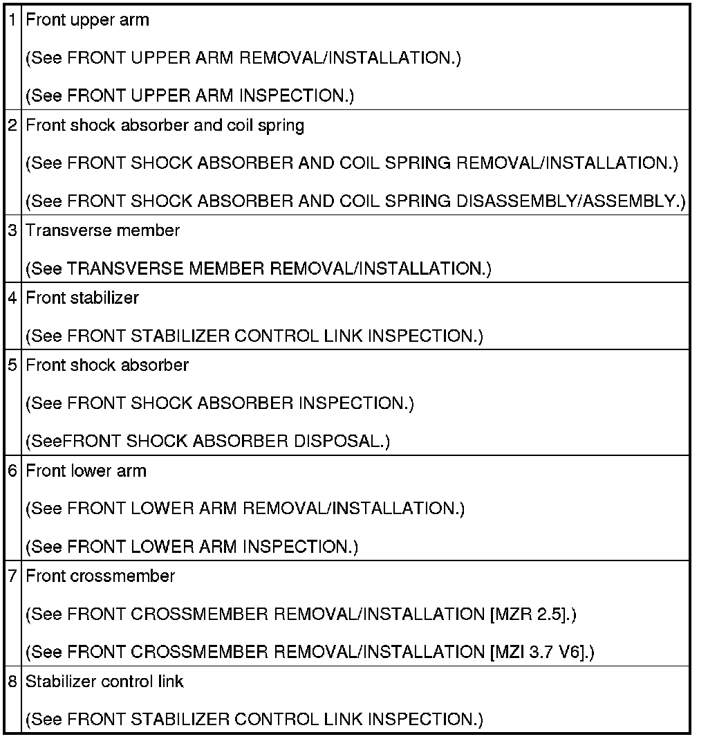 FRONT SUSPENSION LOCATION INDEX