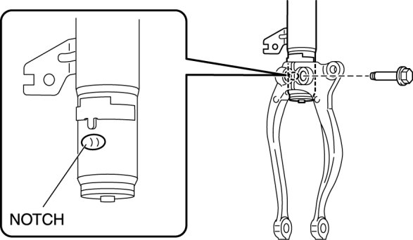 4. Tighten the bolt to the specified torque and install the damper fork.