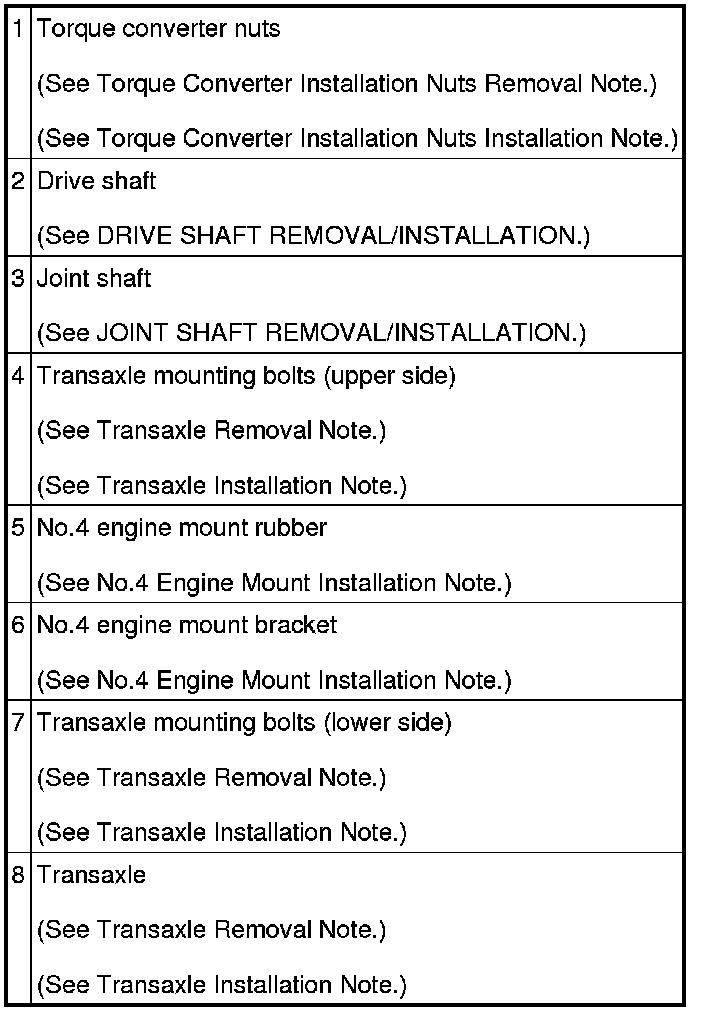 Transaxle Removal Note