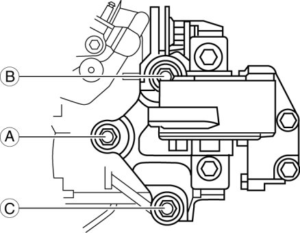 1. Tighten nuts on the No.4 engine mount bracket in the order of A to C.
