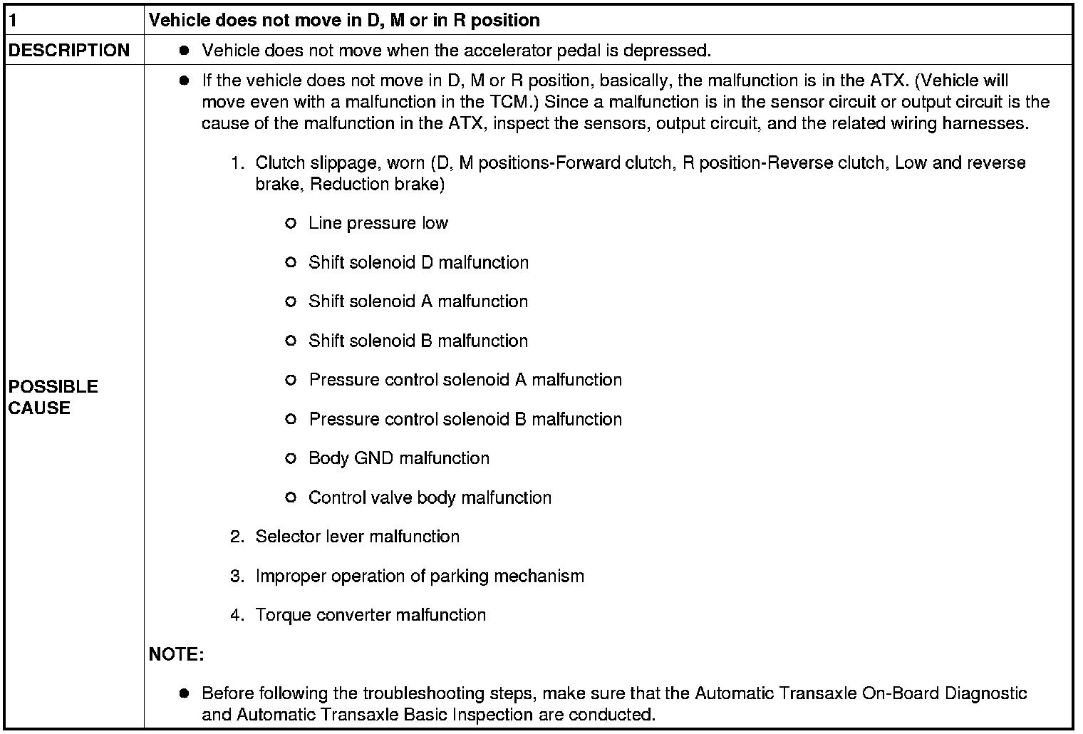 No. 1 Vehicle Does Not Move In D, M, Or In R Position