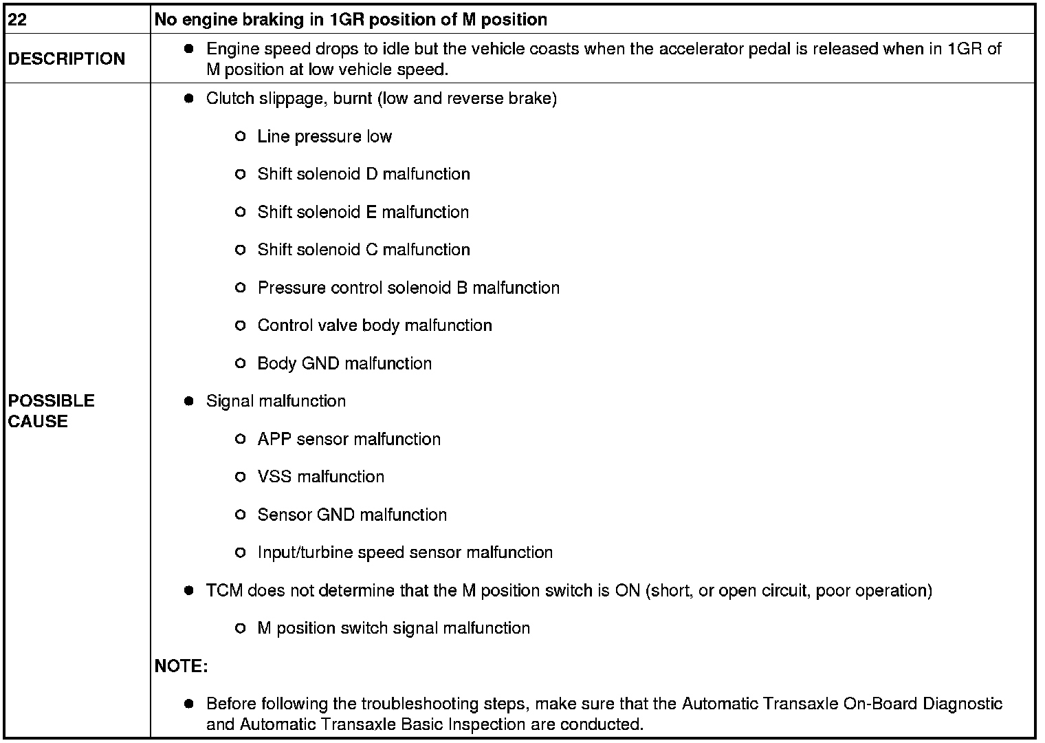 No. 22 No Engine Braking In 1GR Position Of M Position