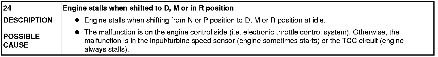 No. 24 Engine Stalls When Shifted To D, M, Or In R Position