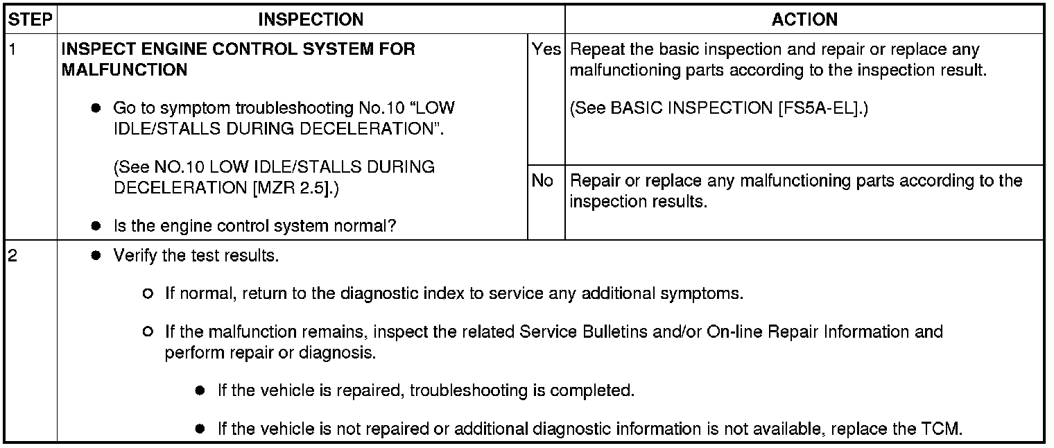 NO.24 ENGINE STALLS WHEN SHIFTED TO D, M OR IN R POSITION [FS5A-EL]