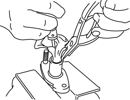 1. Hold the piston down using a cloth-wrapped pin punch.