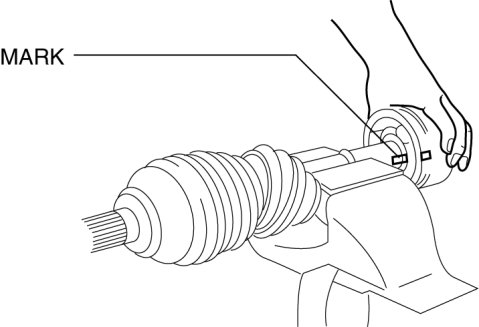 1. While aligning the marks on the shaft and the tripod joint, insert the tripod joint using a bar and a hammer.