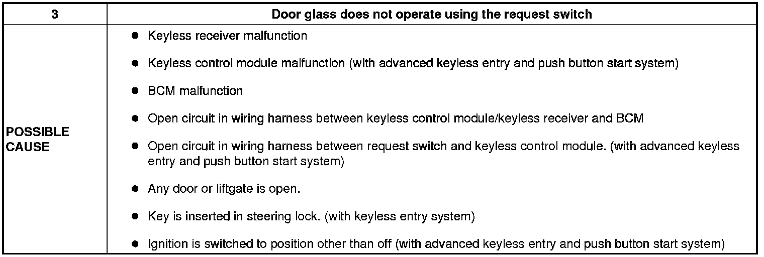 No. 3 Door Glass Does Not Operate Using The Request Switch