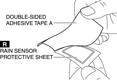 2. Peel off double-sided adhesive tape A from the rain sensor protective sheet.