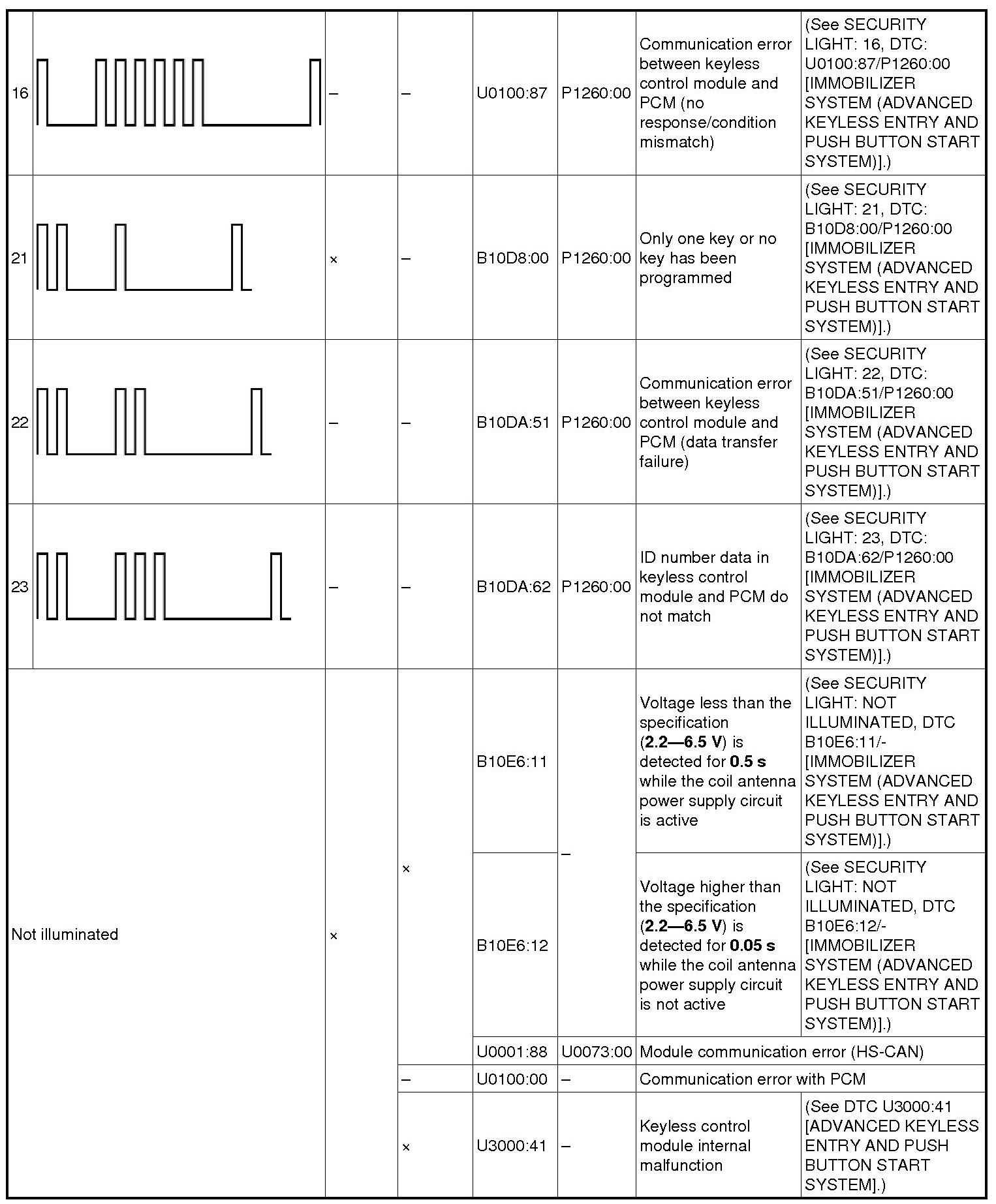 DTC TABLE [IMMOBILIZER SYSTEM (ADVANCED KEYLESS ENTRY AND PUSH BUTTON START SYSTEM)]