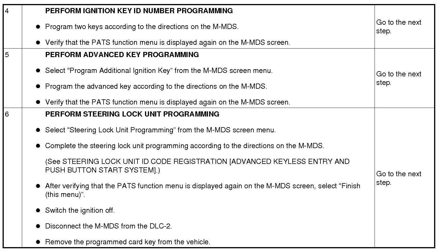 No.5 Programming Procedure Due to Simultaneous Replacement of Immobilizer System-related Parts (PCM, Keyless Control Module, and Steering Lock Unit)
