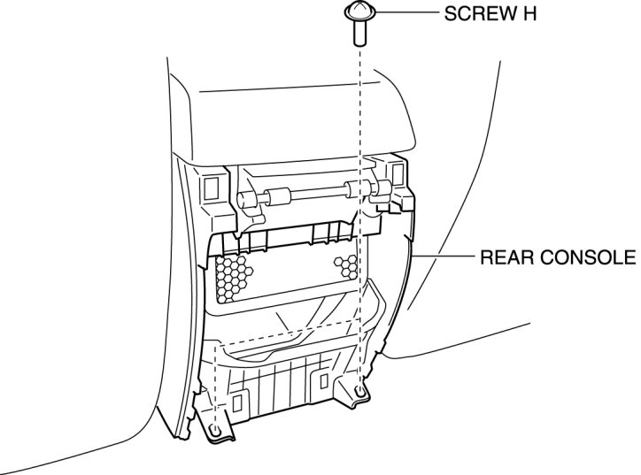 7. Pull the rear console in the direction of the arrow in the order of (1), then detaching clip E.