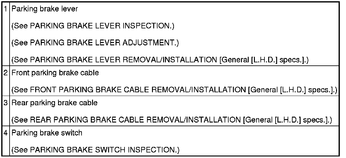 PARKING BRAKE SYSTEM LOCATION INDEX [General [L.H.D.] specs.]