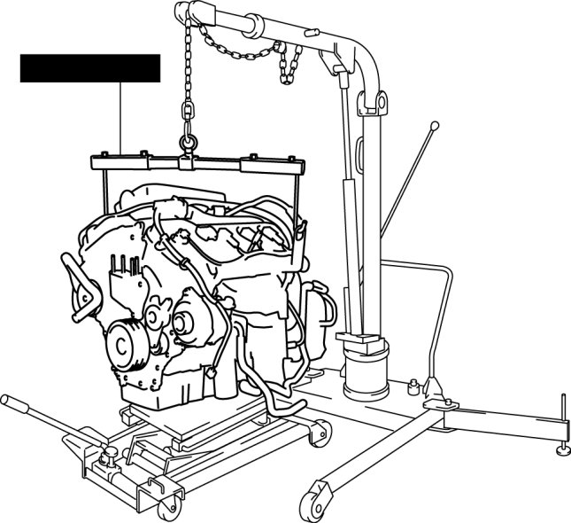 - Protect and stabilize the lowered engine and transaxle component with crossties to prevent injury or damage due to roll over.