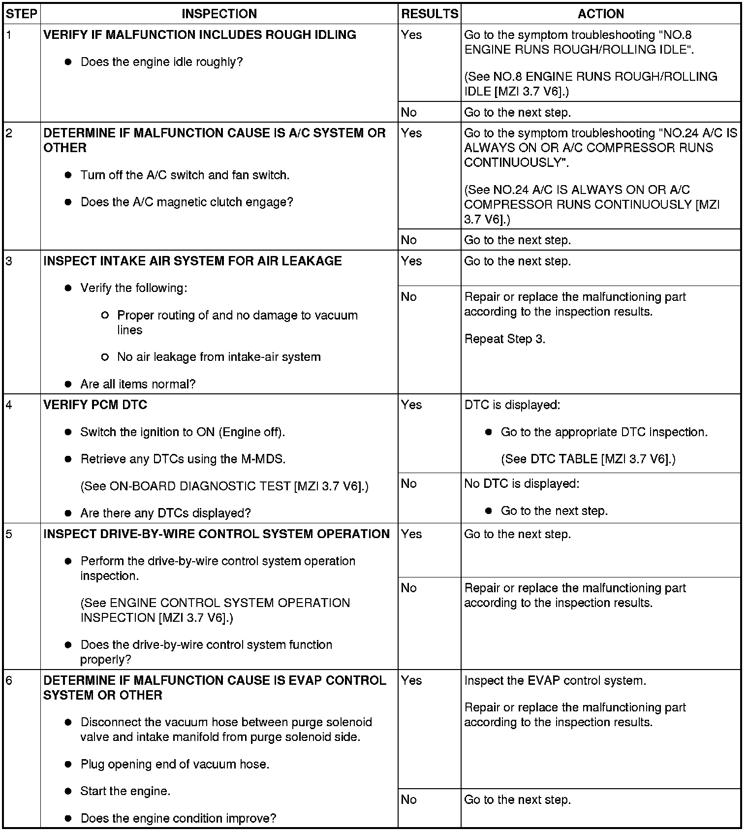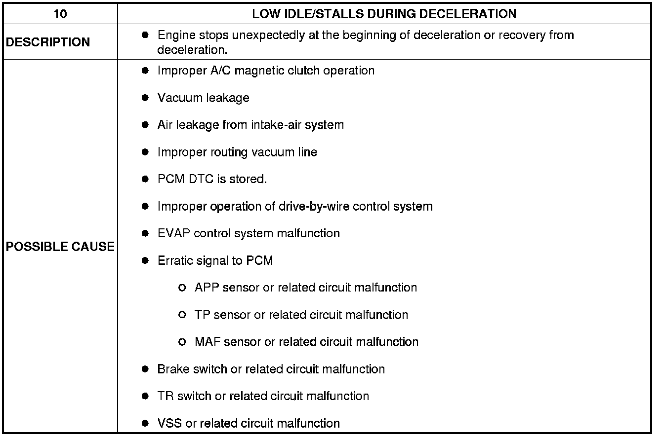 NO.10 LOW IDLE/STALLS DURING DECELERATION [MZI 3.7 V6]